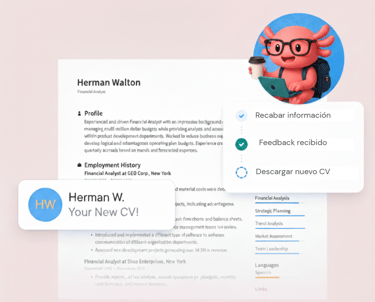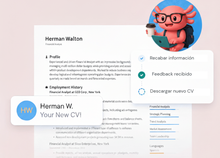Pon tu historia en números, limpia tu formato para ATS y habla el idioma del hiring. Tu próxima entrevista empieza con un CV que sí cuenta tu impacto